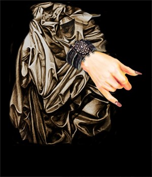 SHOW OF HANDS: Collection of women's hands showing various gestures and holding meaningful accessories. All images are digitally created by Elisabeth Trostli.