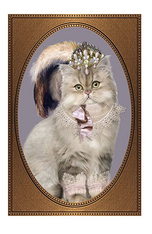 DESCRIPTION : PRINCESS RAGGAH MUFFIN is a glamorous Ragdoll cat wearing a feathered, jewelled headdress, satin ribbon,