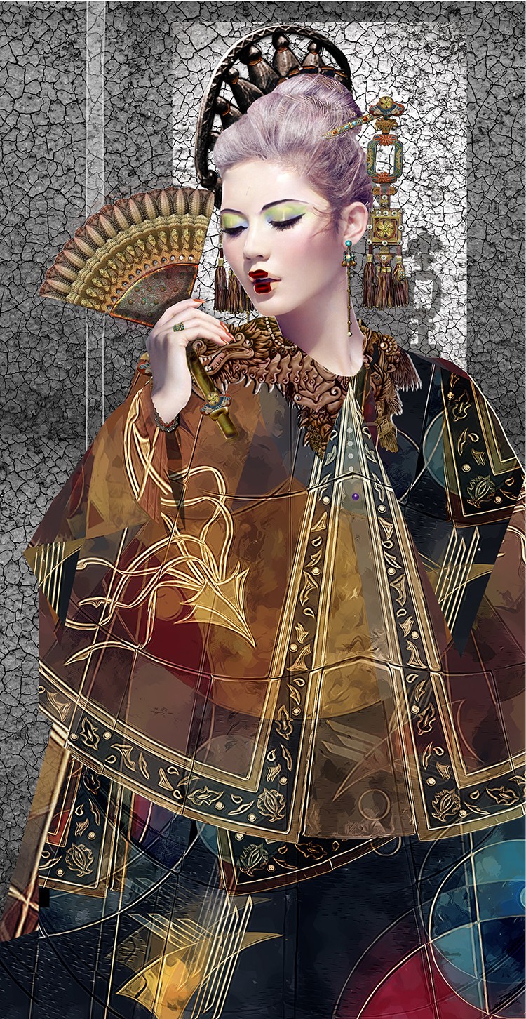 Suzuki, Lady of the Imperial Court, (a.ka. THE GILDED CAGE) is dressed in sophisticated gold brocade and silk kimono,