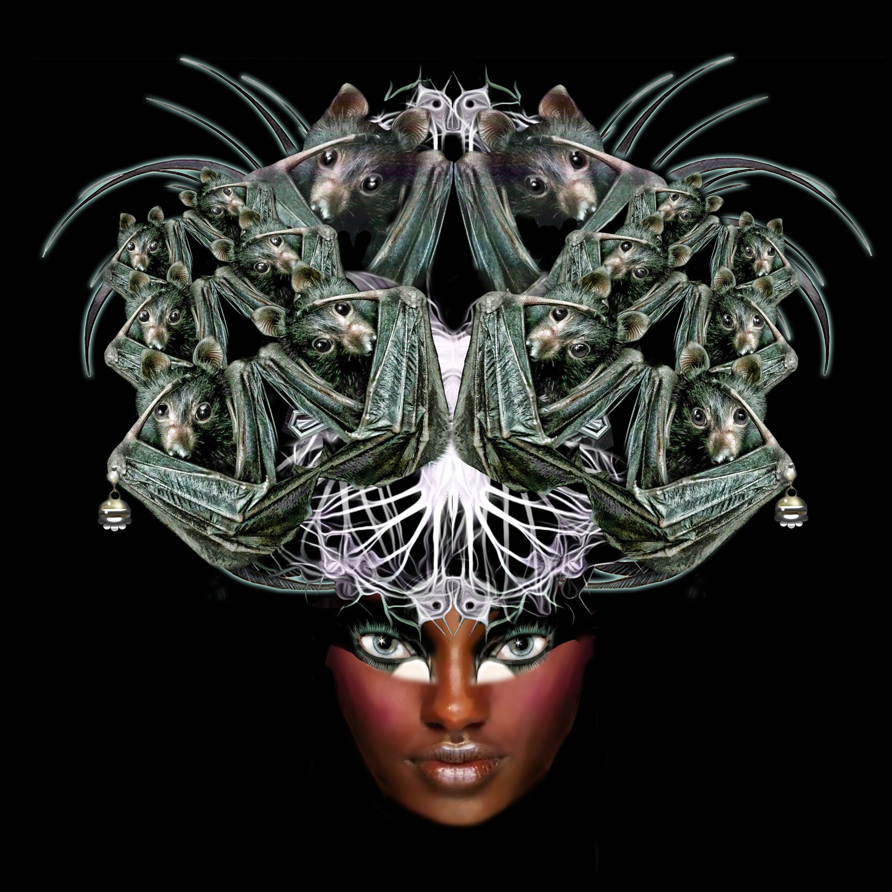 features a mysterious Woman Warrior with careful attention given to the roosting bats that form her headdress. Each detail of this artwork