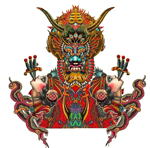 The reversible Creepy Clowns design is inspired by Vintage Clown and Circus memorabilia. The clowns are flanked by Sword Swallowing circus performers.