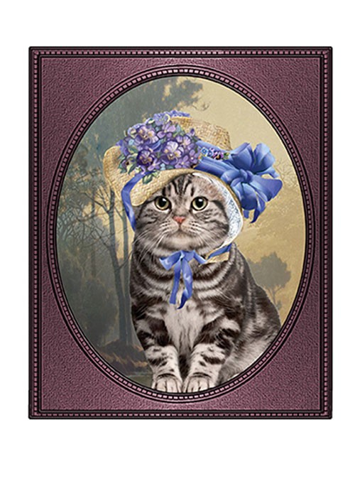 Goofy Cat is framed in a vintage violet oval. Ideal for the Kitty lover in your family. (Collect all the breeds!)